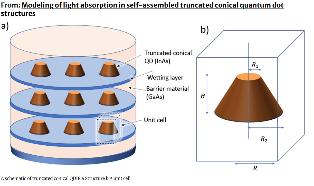 Modeling of light absorption in self-assembled truncated conical quantum dot structures